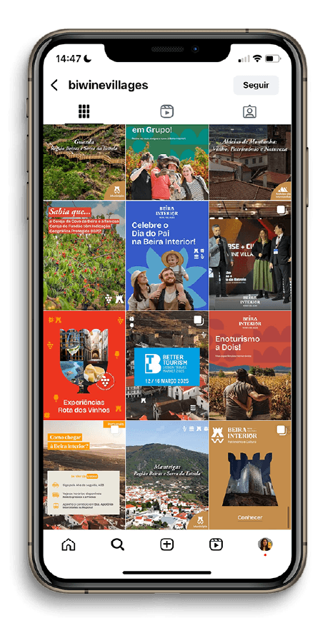 The Beira Interior Regional Wine Commission, in partnership with the Intermunicipal Communities of Beiras e Serra da Estrela and Beira Baixa, challenged Wine Crush to position the region as a benchmark wine tourism destination in Portugal. Over the course of 11 months, we covered an area of 7,840 km², working across 20 municipalities and bringing together a dedicated team committed to turning vision into reality.